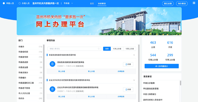 近期,“最多跑一次”部門間協同辦事平臺還將與溫州市各區、縣(市)和管委會的機關內部辦事系統進行對接,為全市機關內部“最多跑一次”改革提供支撐。